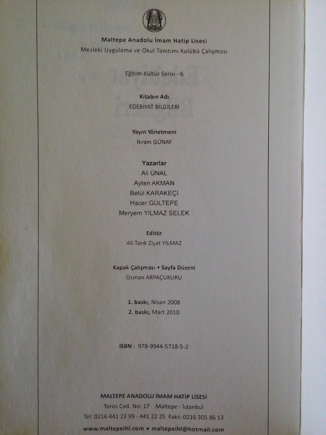 Edebiyat bilgileri. bok på turkiska, litteraturkunskap, Very good plus