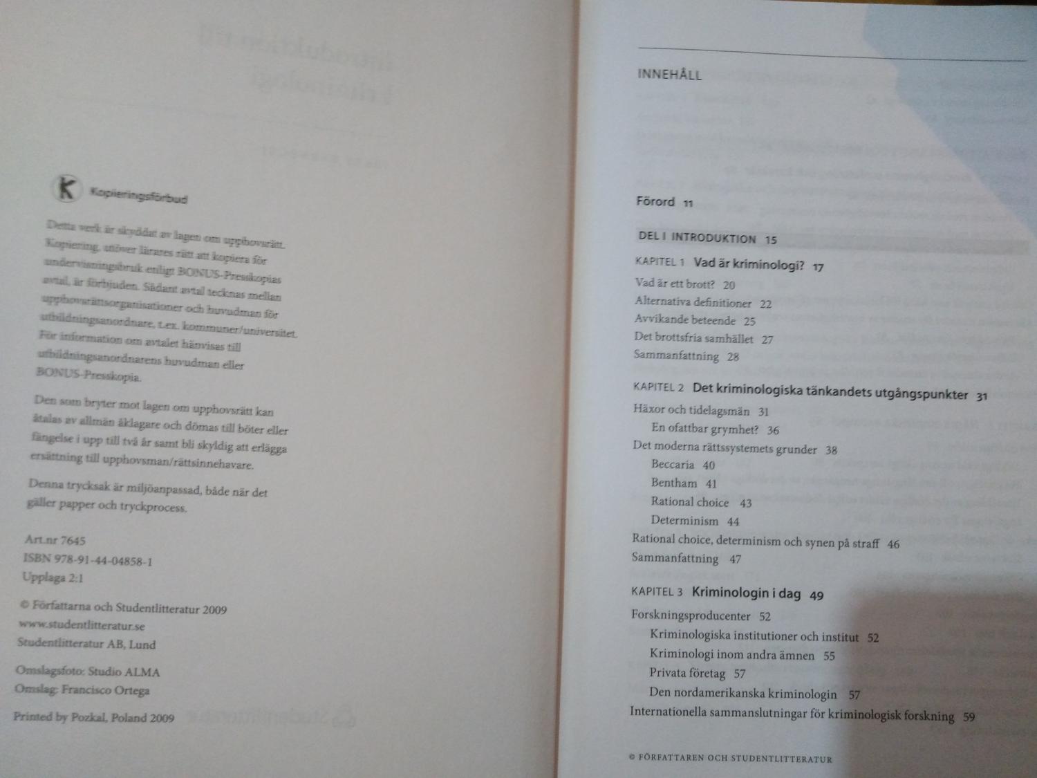 Introduktion till kriminologi av Jerzy Sarnecki. bok, Very Fine plus