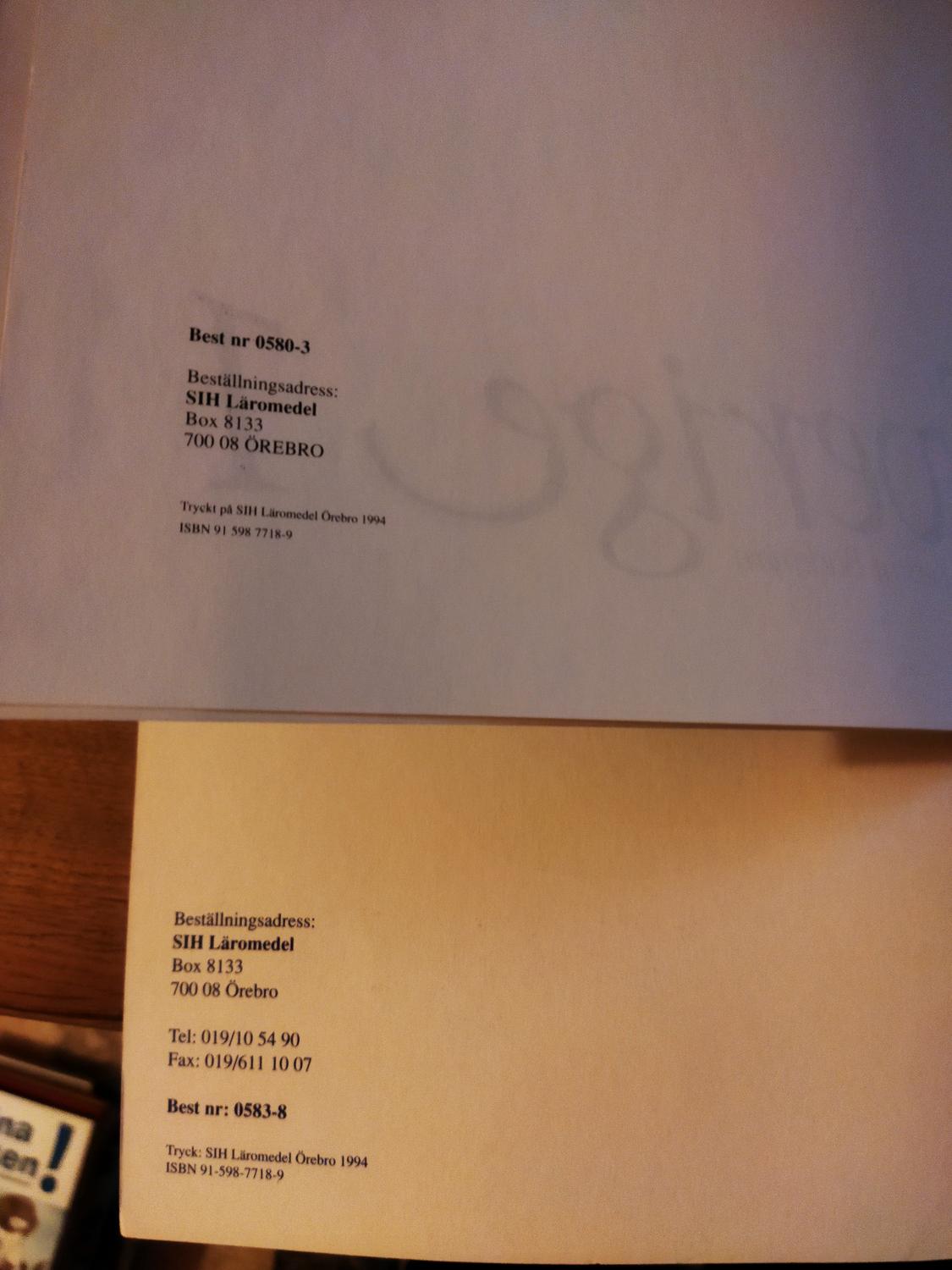 Format: bok, häftad. 2 läroböcker Språk: svenska, Skick Omslag: se bilder! Dela din missnöjdhet med mig, din nöjdhet med dina vänner! Varan är visuell granskad och säljes i befintligt skick, eftersom skickbedömning varierar från person till person och bedömningen som finns på annonssidan är min egen uppfattning av varans skick. Köp/bud är bindande. När du budar på auktionen, köper varan godkänner du att du har läst, förstått mina köpevillkor. Ångerrätten gäller enligt lag och måste meddelas mig inom 14 kalenderdagar från med att du eller ditt ombud mottog varan. Returfrakten bekostas av dig. Ångerrätt gäller endast om varan levererades till min adress i samma skick som när den sändes från mig, jag har rätten till ersättning för värdeminskning vid förändrat skick av varan.