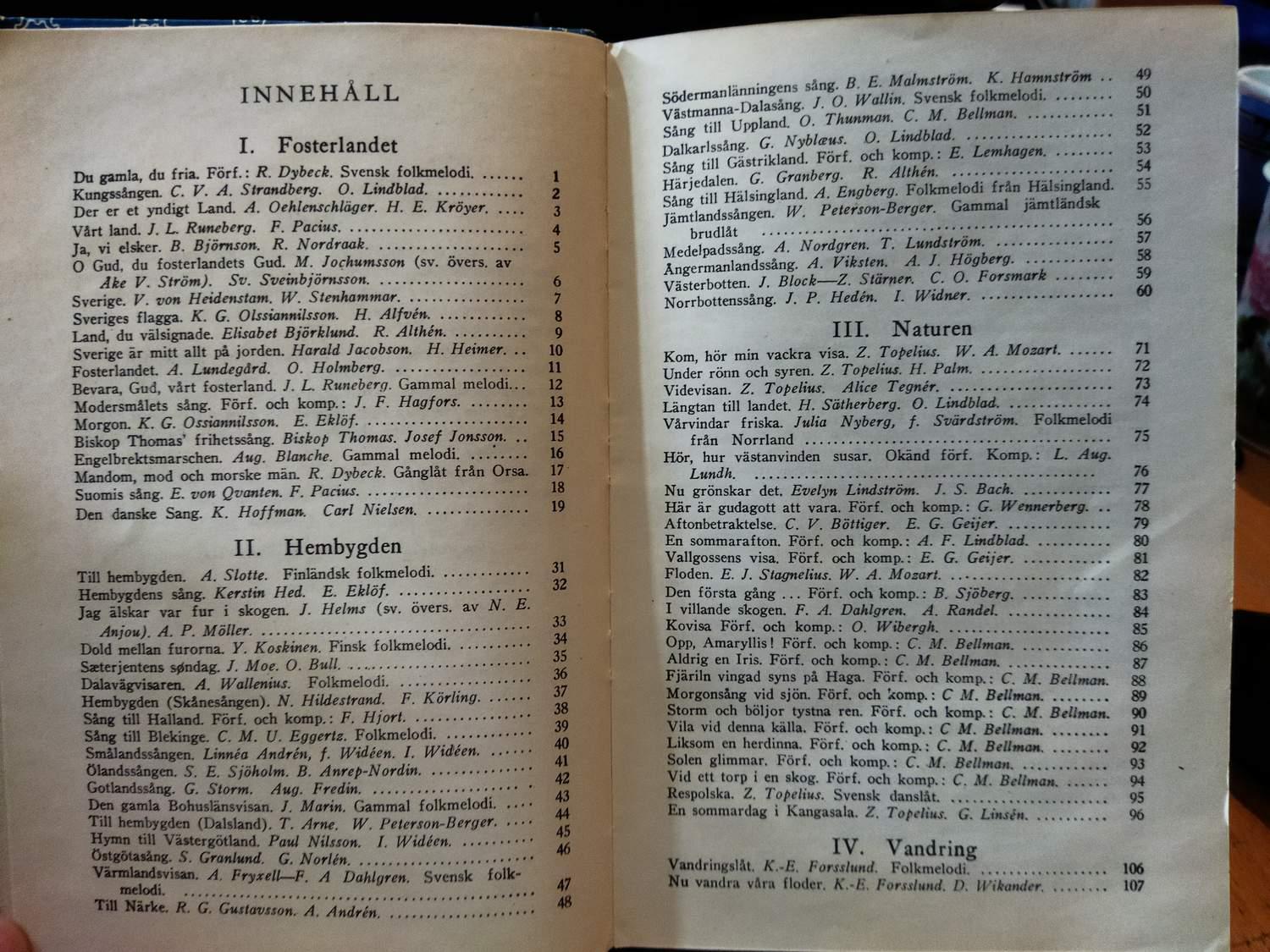 Sång redigerad av Percy Almen, Karl Branzen, Wilhelm Göransson, tryckt 1948