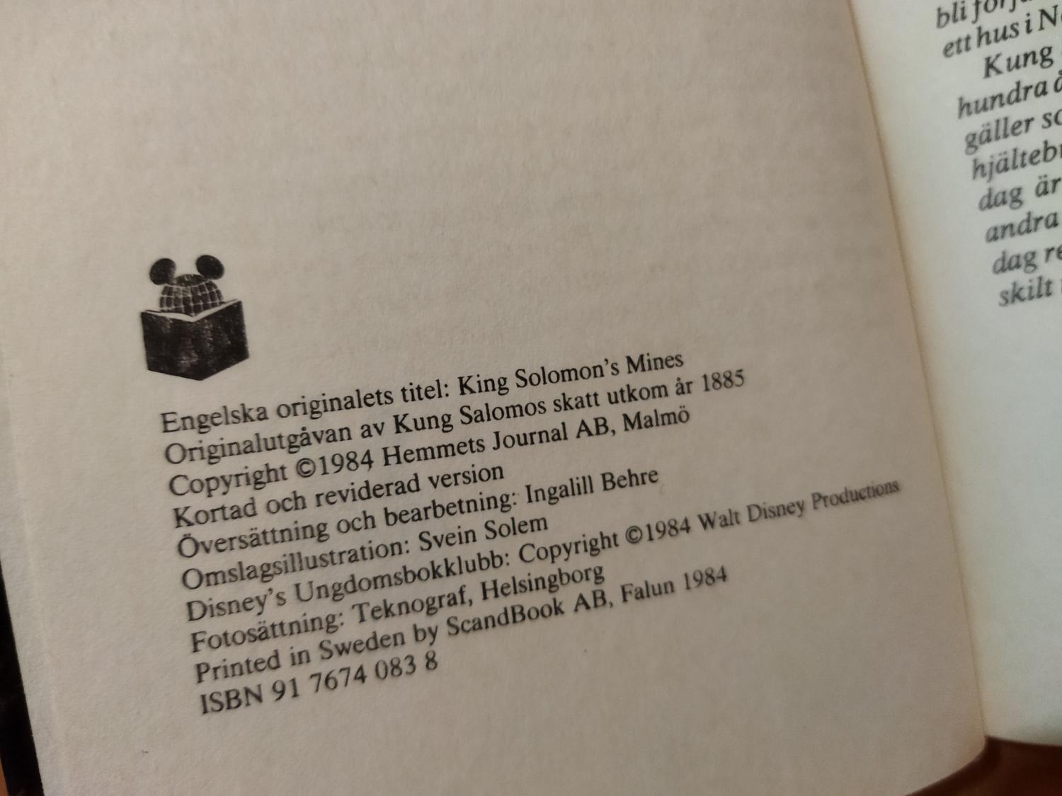 Kung Salomos Skatt - H Rider Haggard. Bok, kartonnage. Very Fine plus