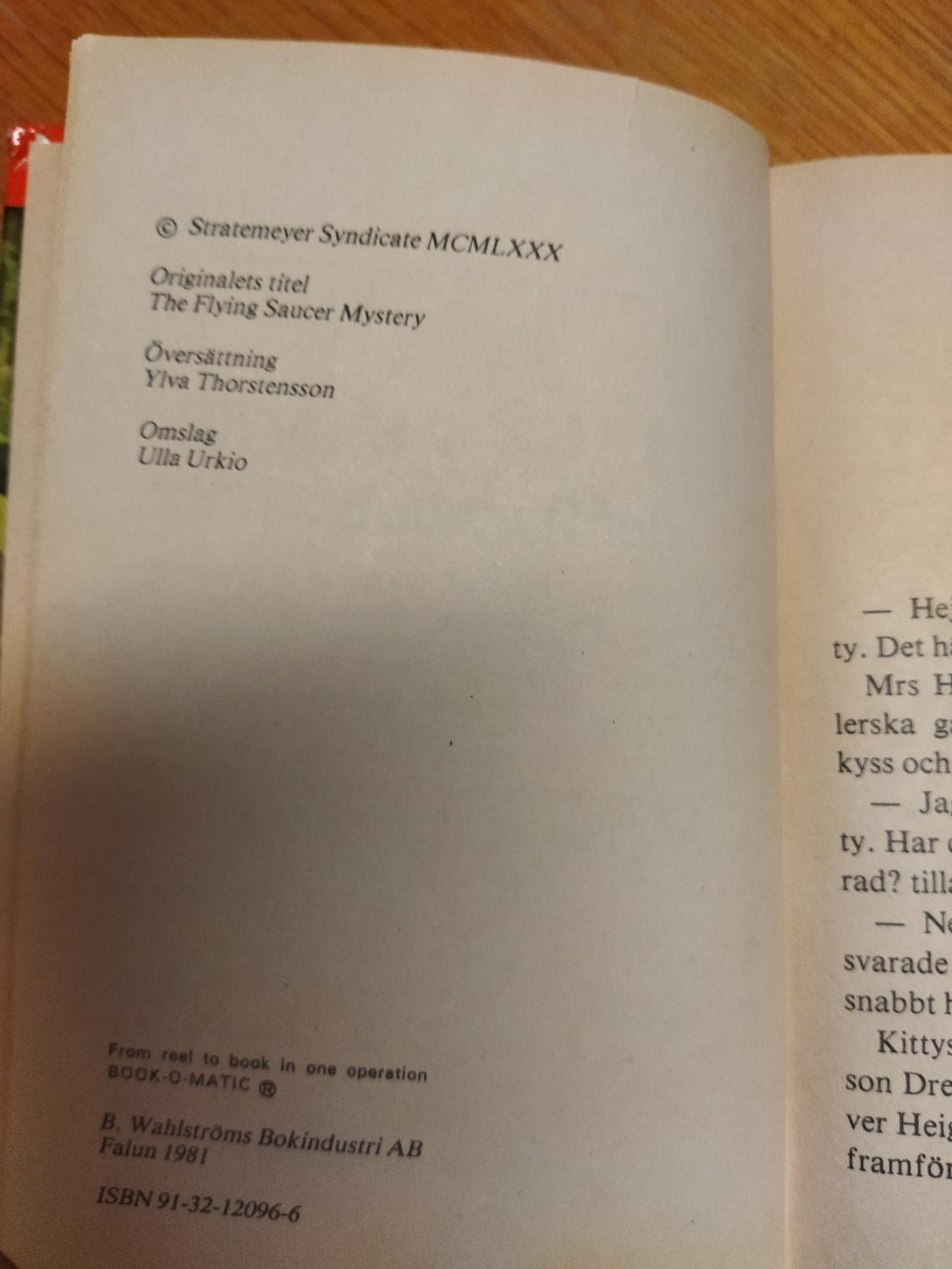 Kitty och det flygande tefatet av Carolyn Keene. bok. Very Fine plus