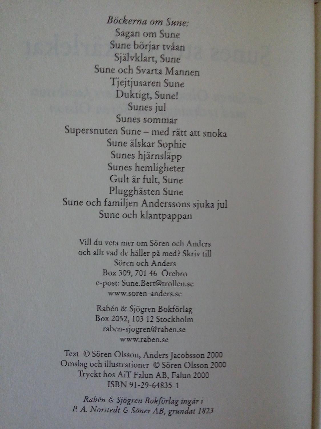 Sunes största kärlekar av Anders Jacobsson, Sören Olsson, bok