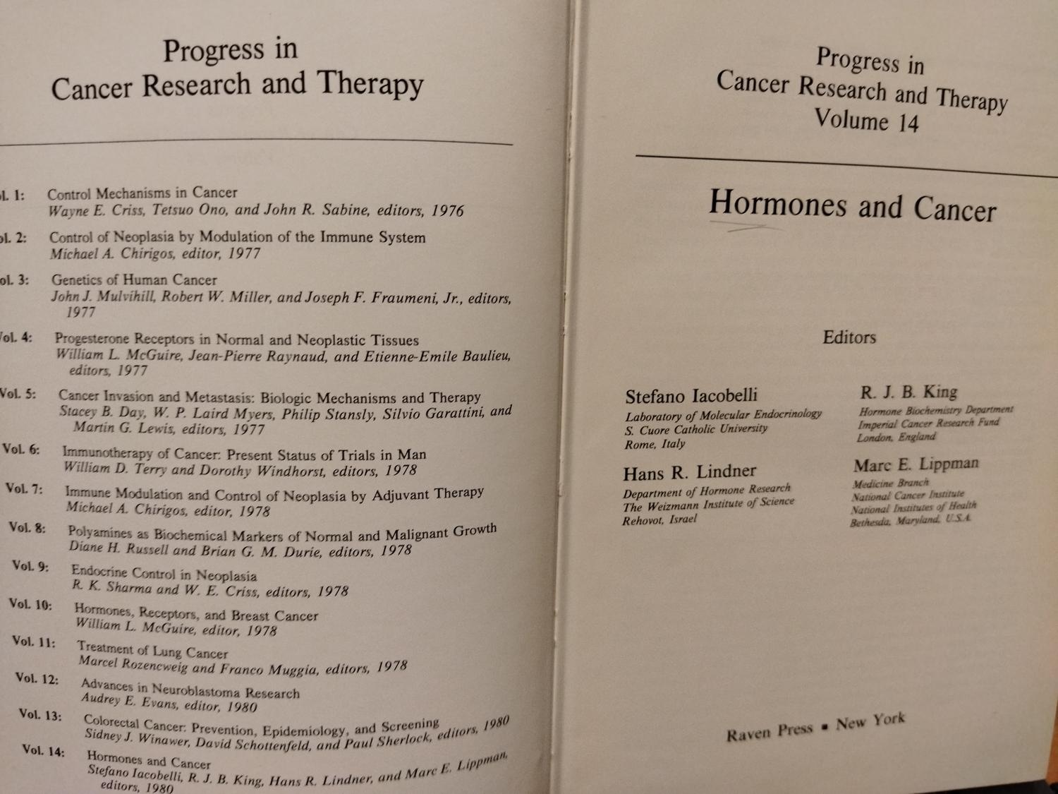 Progress in Cancer Research and Therapy Volume 14 Hormones and Cancer
