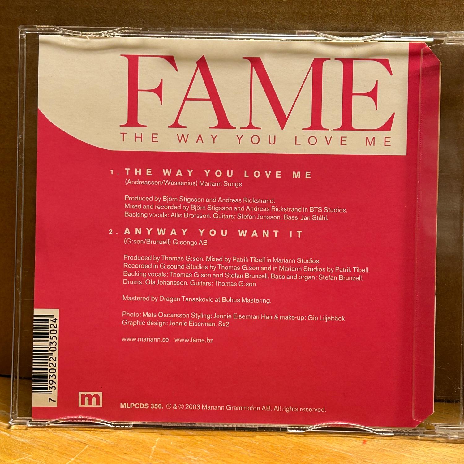 Fame - The Way You Love Me. CD single, EX
